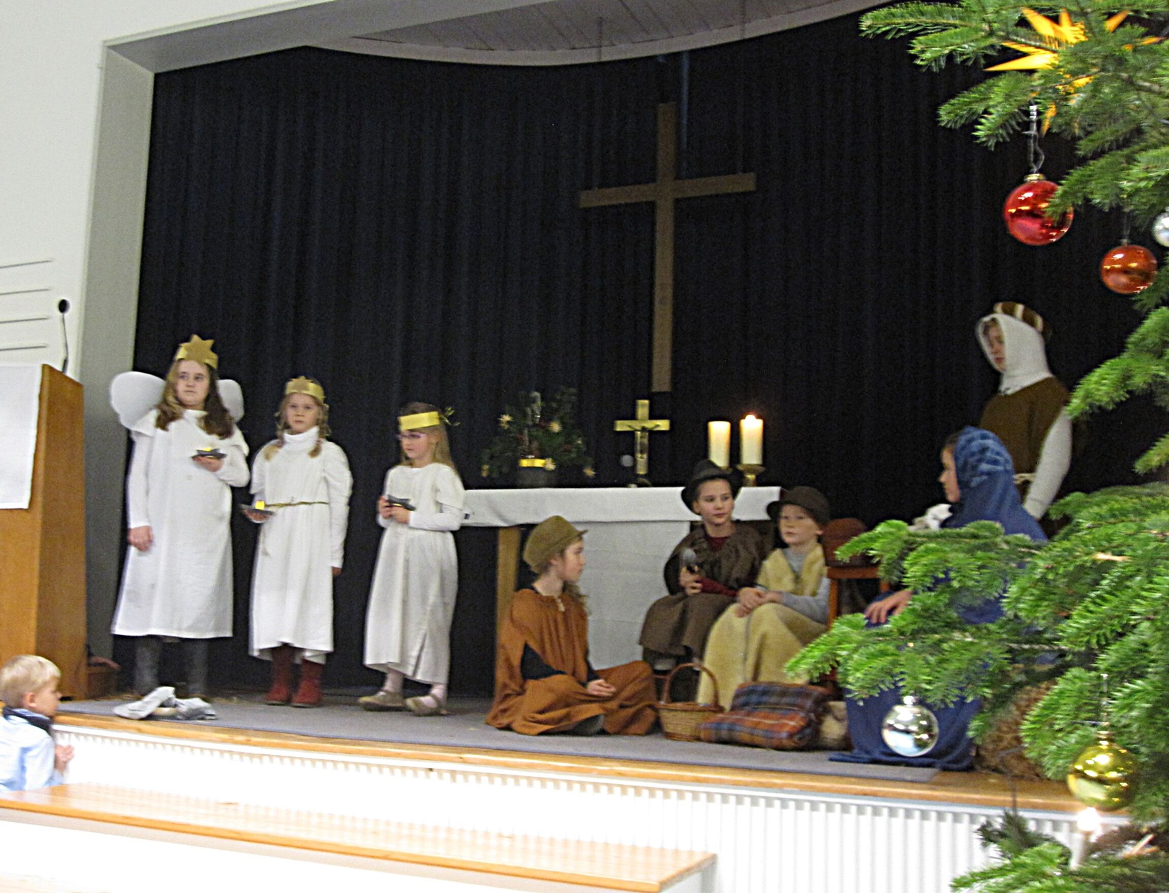Im Gottesdienst um 15 Uhr am Heiligabend im Gemeindehaus führen Kinder unter der Leitung der KIndergottesdienstgruppe ein Krippenspiel auf. Die Flötenkinder von Karla Schwarz begleiten den Gottesdienst.