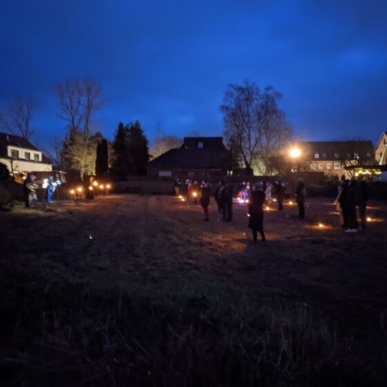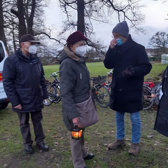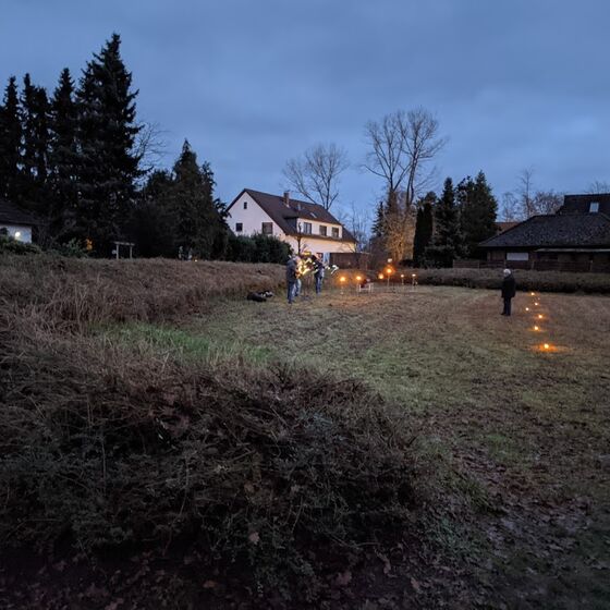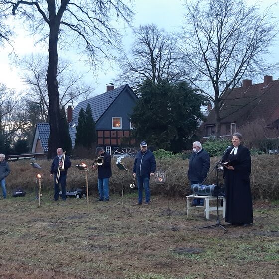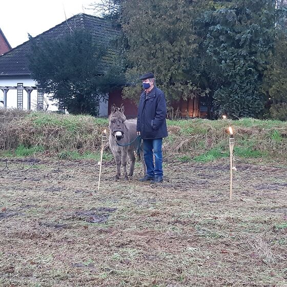 Ungewohnter Gottesdienst unter Coronabedingen "Auf dem Feld" mit Pastorin Servatius, dem Posaunenchor und dem Weihnachtsesel Fotos: Helterhoff und Neubauer
