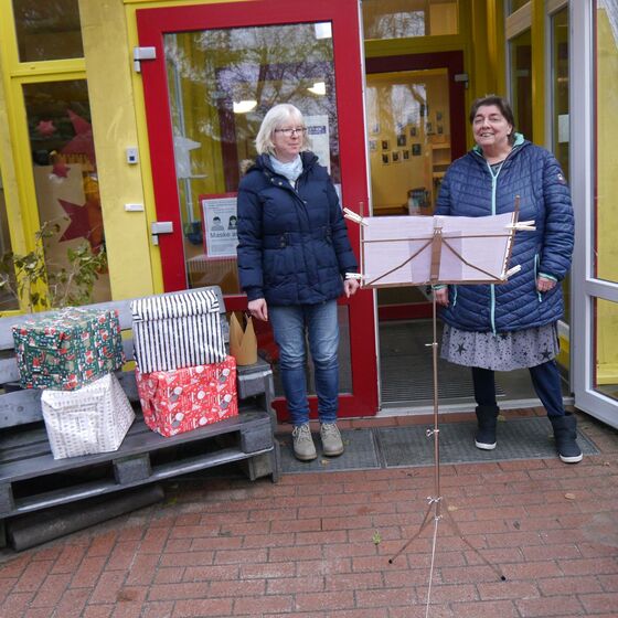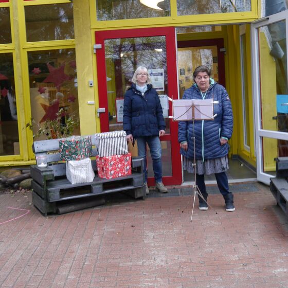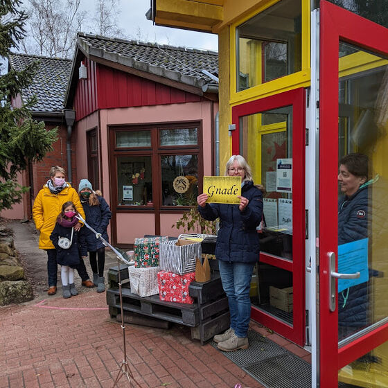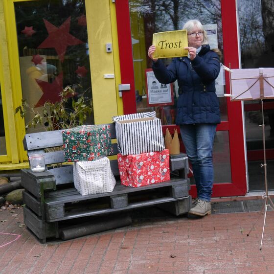Ungewohnte Gottesdienste am Gemeindehaus und auf dem JoKi-Gelände mit Pastorin Riegert und dem KIndergottesdienst-Team Fotos: Kloppenburg und Neubauer