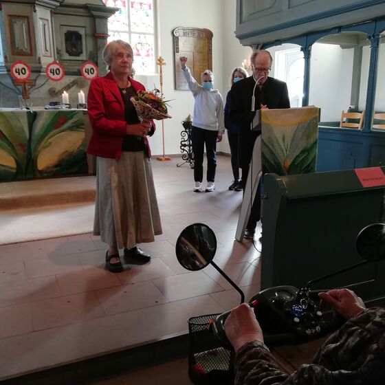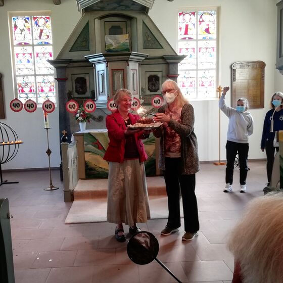 Am 5.9. haben wir im Gottesdienst für diese „40 Jahre Ökumenische Initiative für geflüchtete Menschen“ gedankt. Stellvertretend nahm Gudrun Chopin als "verlässlicher Motor" der Initiative die Gratulationen samt Blumen und Geburtstagskuchen entgegen.