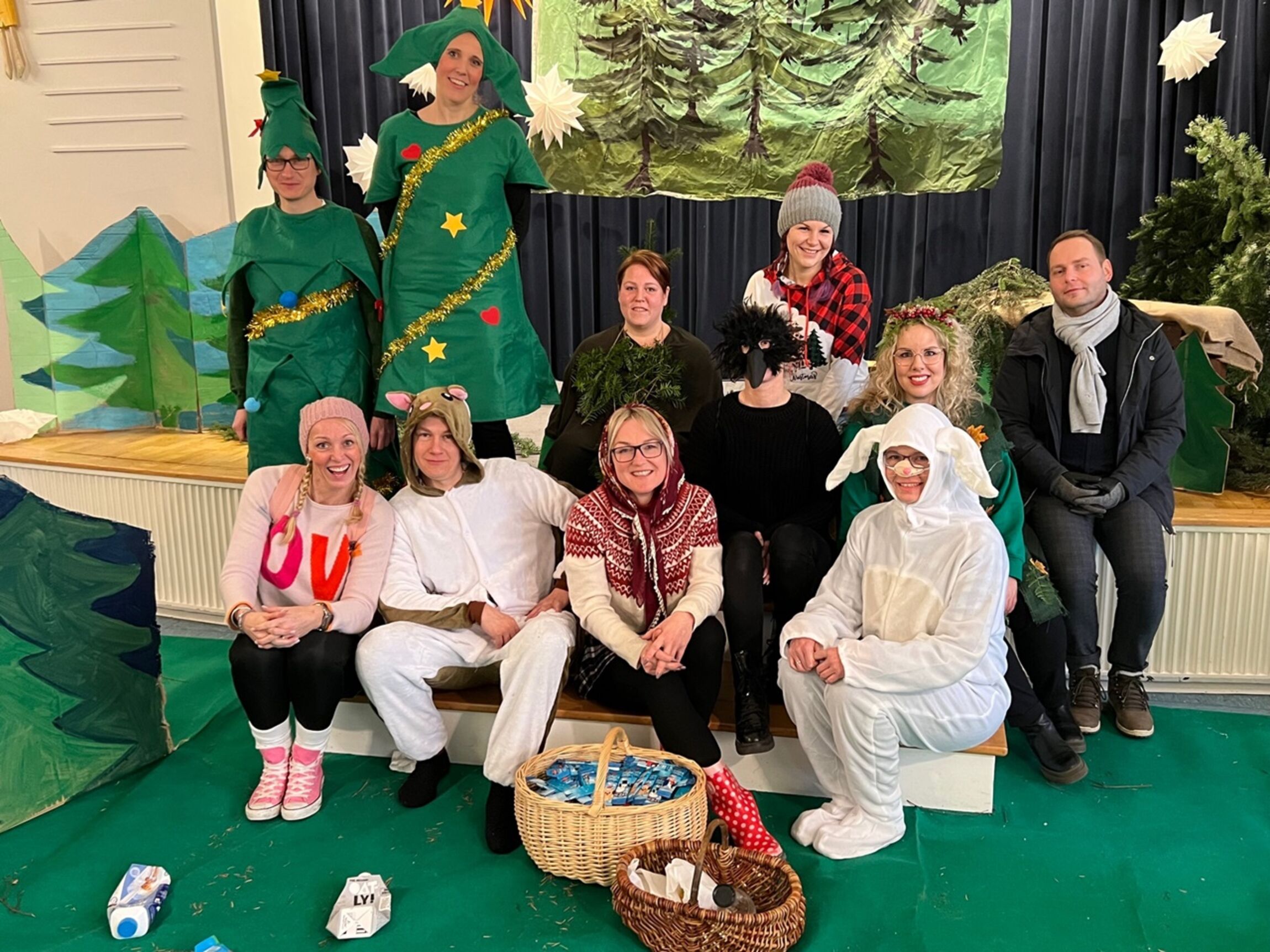 Die Eltern-Theater-Gruppe der JoKi Kindertagesstätte spielt das Stück "Die Weihnachtstanne" für die Kinder des JoKi, Poselino und Schwanenkinder