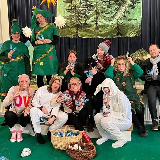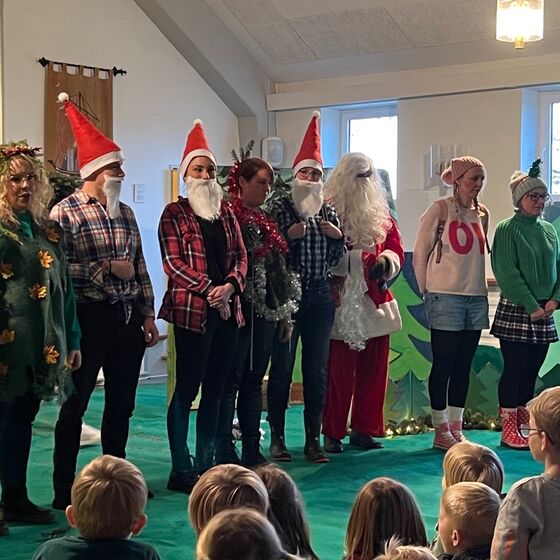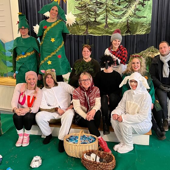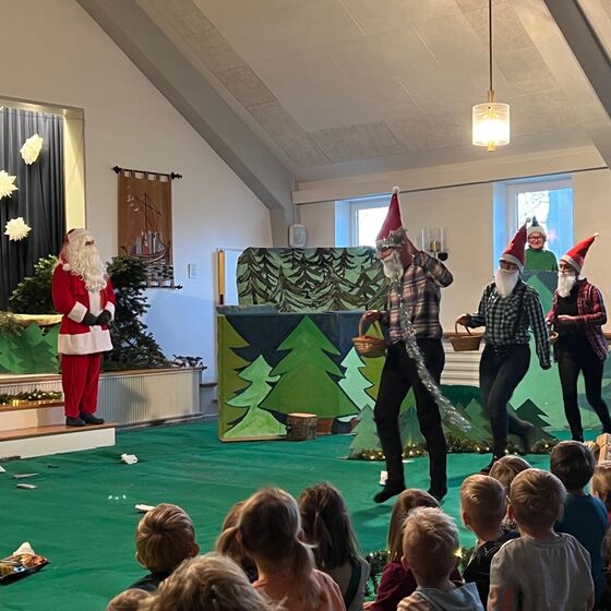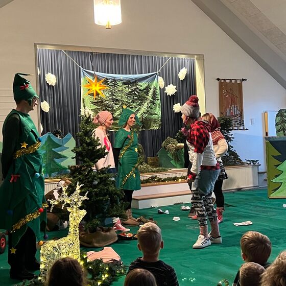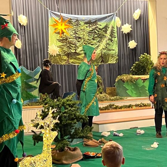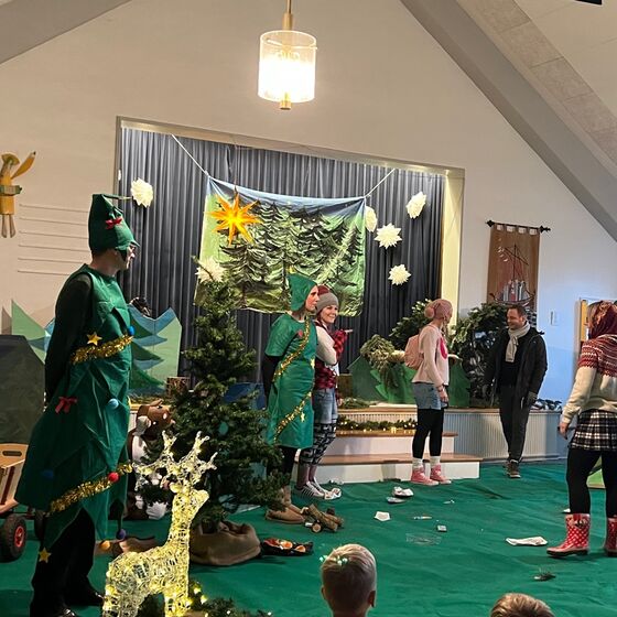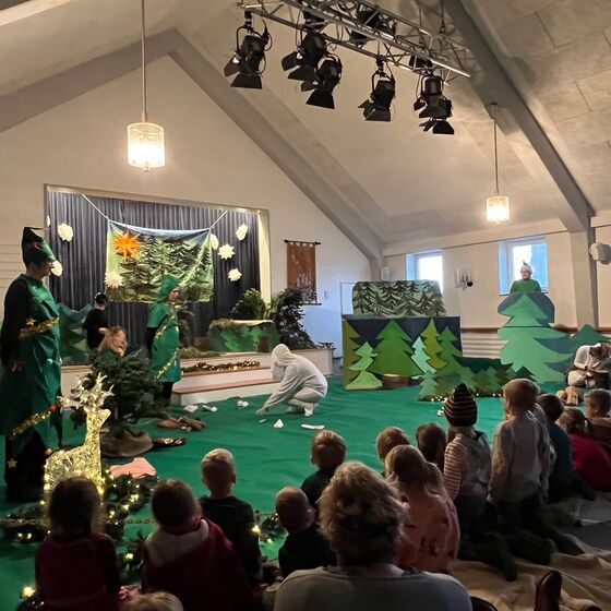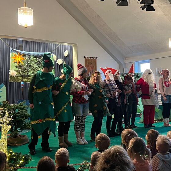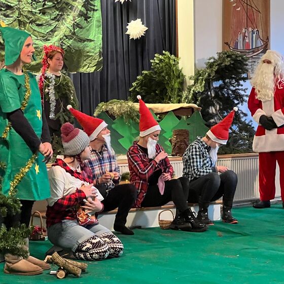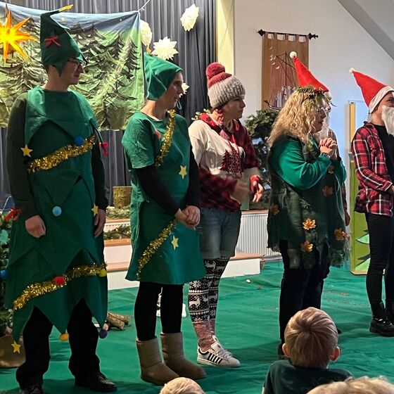 Die Eltern-Theatergruppe der JoKi Kindertagesstätte spielt das Stück "Die Weihnachtstanne" für die Kinder des JoKi, Poselino und Schwanenkinder Fotos: Kloppenburg