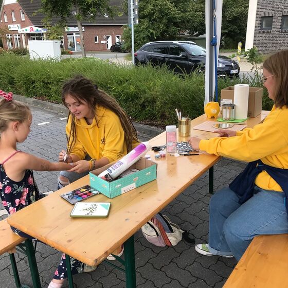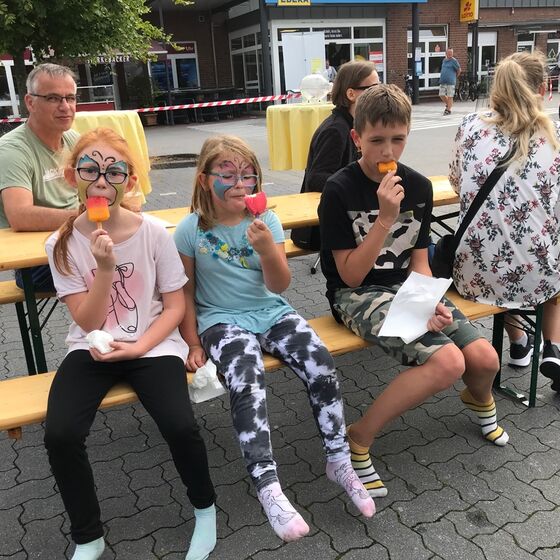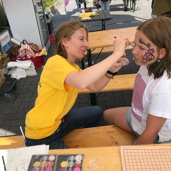Pro Juventute lud alle Kinder zu fröhlichem Hüpfen und Toben auf einer Hüpfburg ein. Wer mochte, konnte sich schminken lassen, ein Glitzer-Tattoo bekommen und ein Eis genießen. Kühle Getränke standen für kleines Geld zur Verfügung.