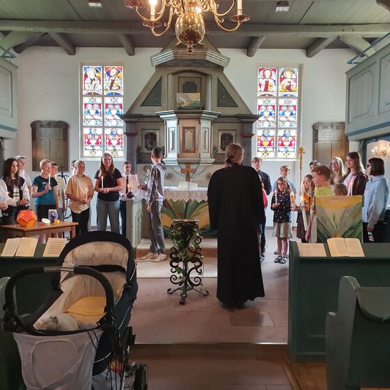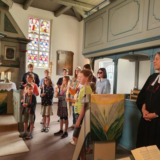 Tauferinnerung Nach einem Vorbereitungstreffen am Samstag im September mit dem Kindergottesdienst-Team haben viele Kinder und ihre Eltern zusammen mit Pastorin Servatius einen Gottesdienst zur Tauferinnerung gefeiert. Fotos: M. Kubena