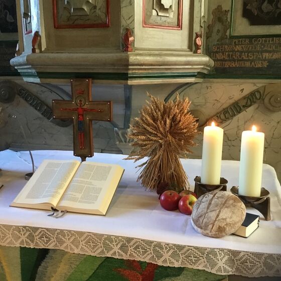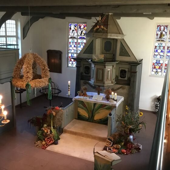Zum Erntedankfest wurde die Kirche wieder festlich durch die Landfrauen geschmückt. Fotos: M. Schmieder und I. Alpers