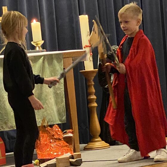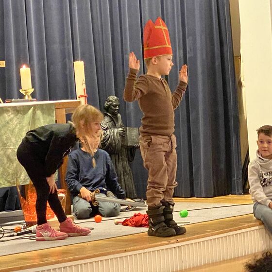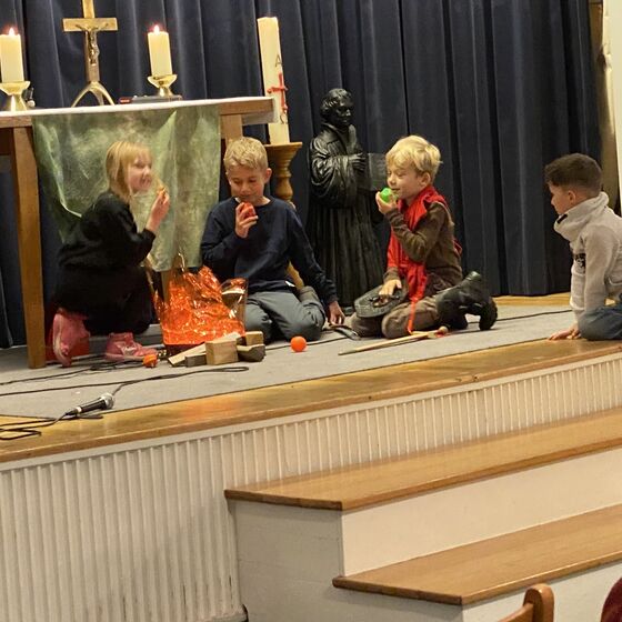 Am 11. November wurde das St. Martin-Fest im Gemeindehaus gefeiert. Die zweiten Klassen der Heideschule haben ein Anspiel dazu aufgeführt. Musikalisch haben der Posaunenchor der Kirchengemeinde und der Schulchor die Veranstaltung begleitet. Im Anschluss zogen die Kinder mit den Eltern und vielen Laternen zur Katholischen Kirche St. Ansgar in den Pfarrgarten. St. Martin mit seinem Pferd führte den Umzug an. Diese kleine Reise wurde vom Blasorchster des TV Schwanewede musikalisch begleitet. Im Pfarrgarten wurde dann das Brot geteilt.