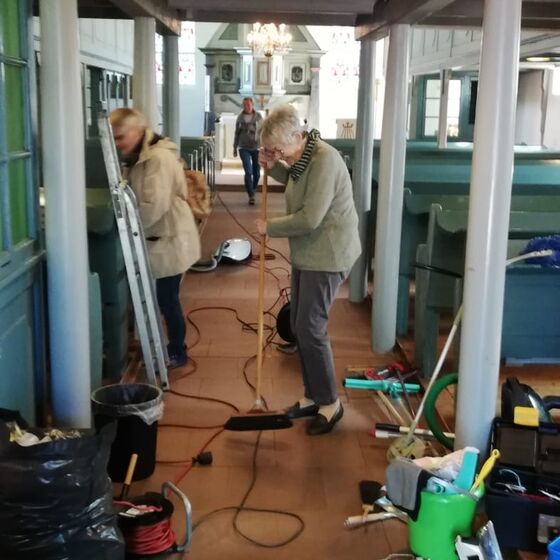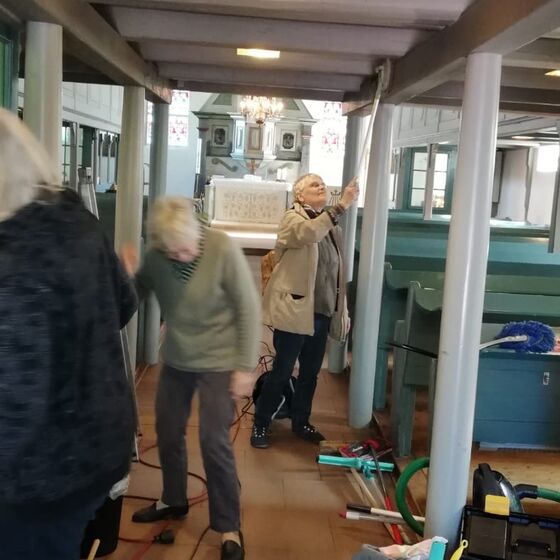 Fleißige Helferinnen und Helfer haben im April die Kirche gereinigt.