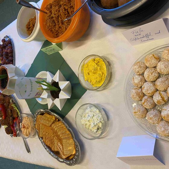 Im Anschluss an den Gottesdienst gab es die Möglichkeit für Begegnungen und kleine Köstlichkeiten. Auch der "Eine-Welt-Laden" war vertreten.